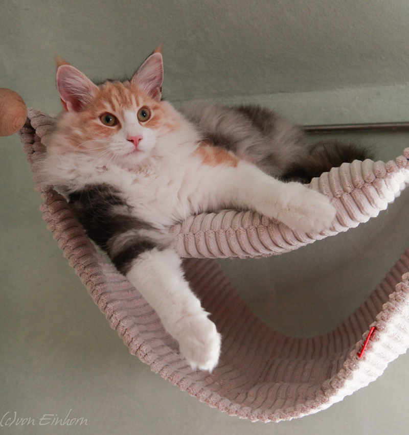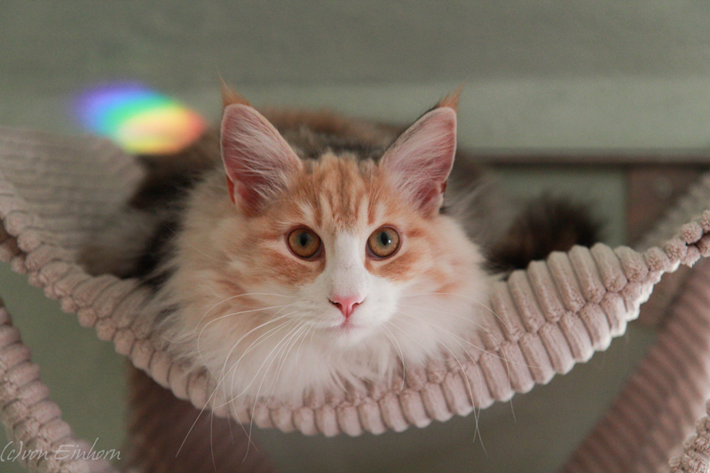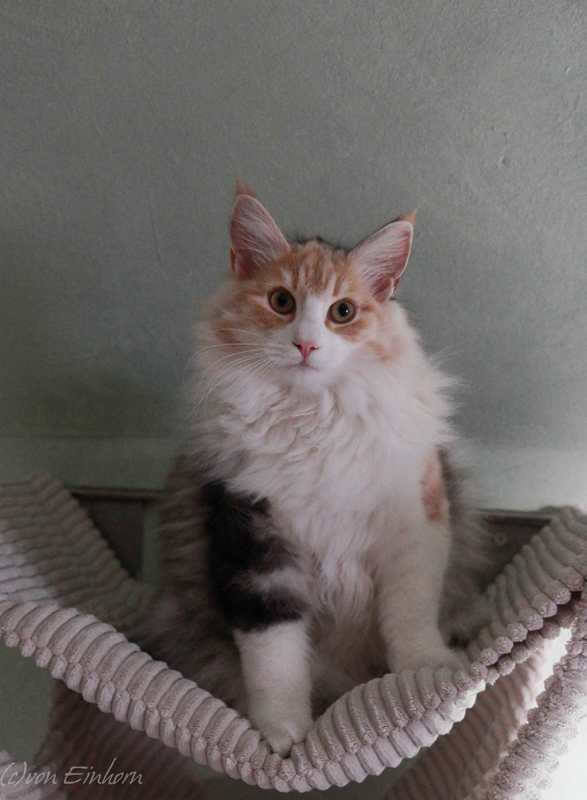 Traumtörtchen. Sie verspricht ein sehr großes Mädchen zu werden, ihre Pfoten sind stämmig, ihr Kopf perfekt dreieckig mit einem super geraden Profil und einem gerundeten Top. Ihre großen Ohren sind perfekt gesetzt und mit schönen großen Lynxtips ausgestattet, dazu ein kräftiges Kinn. Ihr Silber ist absolut sauber und auch die Fellqualität und Menge verspricht sehr gut zu werden. Einzig ihr Schwanz könnte ein wenig länger sein, aber damit können wir leben ;-) Ihr Charakter ist einzigartig....so ein verplappertes Einhorn bzw. Einhörner (der ganze L-Wurf ist verplappert) gibt/gab es bisher noch nicht! Es wird alles kommentiert und oft hören wir sie spielen....schade, dass ich leider nicht immer alles verstehe was sie so zu erzählen hat ;-)