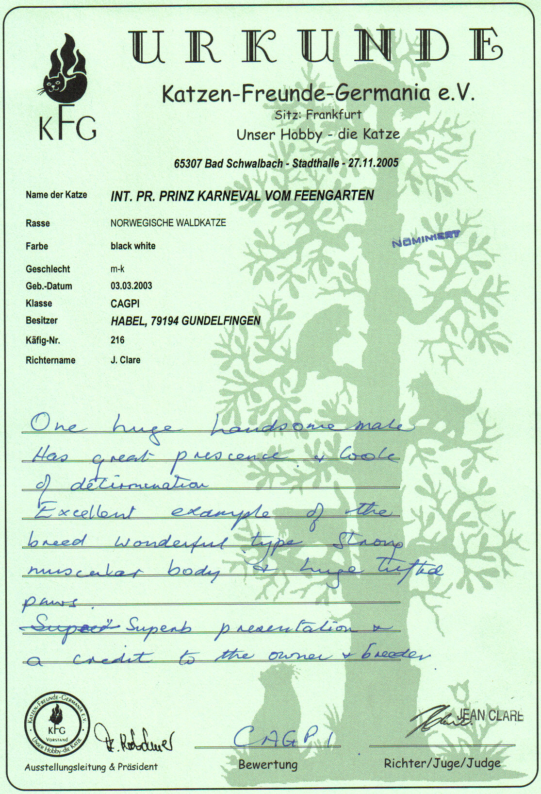 Richterbericht Prinz Karneval vom Feengarten vom 27.11.2005 |